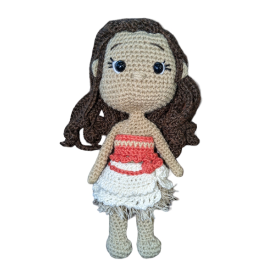 The Fierce Islander is a 9-inch crocheted doll that embodies the power and grace of the ocean along with intricate details and a strong sense of determination. Each doll is handmade with the utmost care and attention to detail, ensuring that no two are exactly alike. You can customize your doll with different styles and colors by sending me a message or leaving a note in your order. Crafted from soft and durable acrylic yarn, cotton thread, and stuffed with love! It is also made with safety eyes and a wooden stick for neck support. Doll contains small parts and is not suitable for children under 3 years old Additionally, we make and store our items in a household that has a cat. Order yours today and add a touch of magic to your collection. This pattern is designed by Green Frog Crochet and brought to life by ours truly.