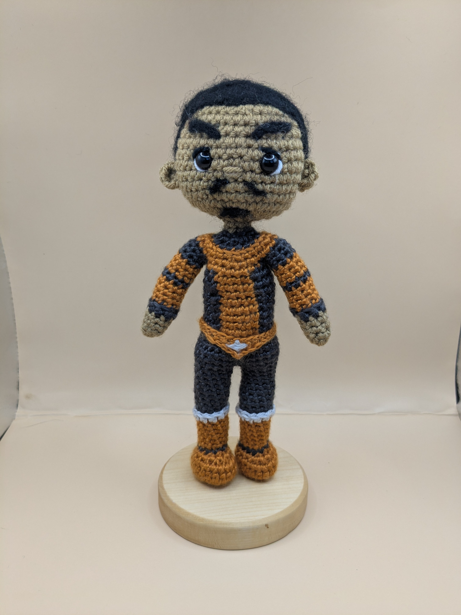Embodying the spirit of resilience and self-reliance, meet Isom, the flagship hero of the Rippaverse . Standing at 9-inch tall, this crocheted doll captures Avery Silman in his iconic hero suit, ready to stand his ground against the criminal kingpins of Florespark. With his stern demeanor and unmistakable costume, this doll is the perfect companion for any fan of the Rippaverse or collector of modern legends.