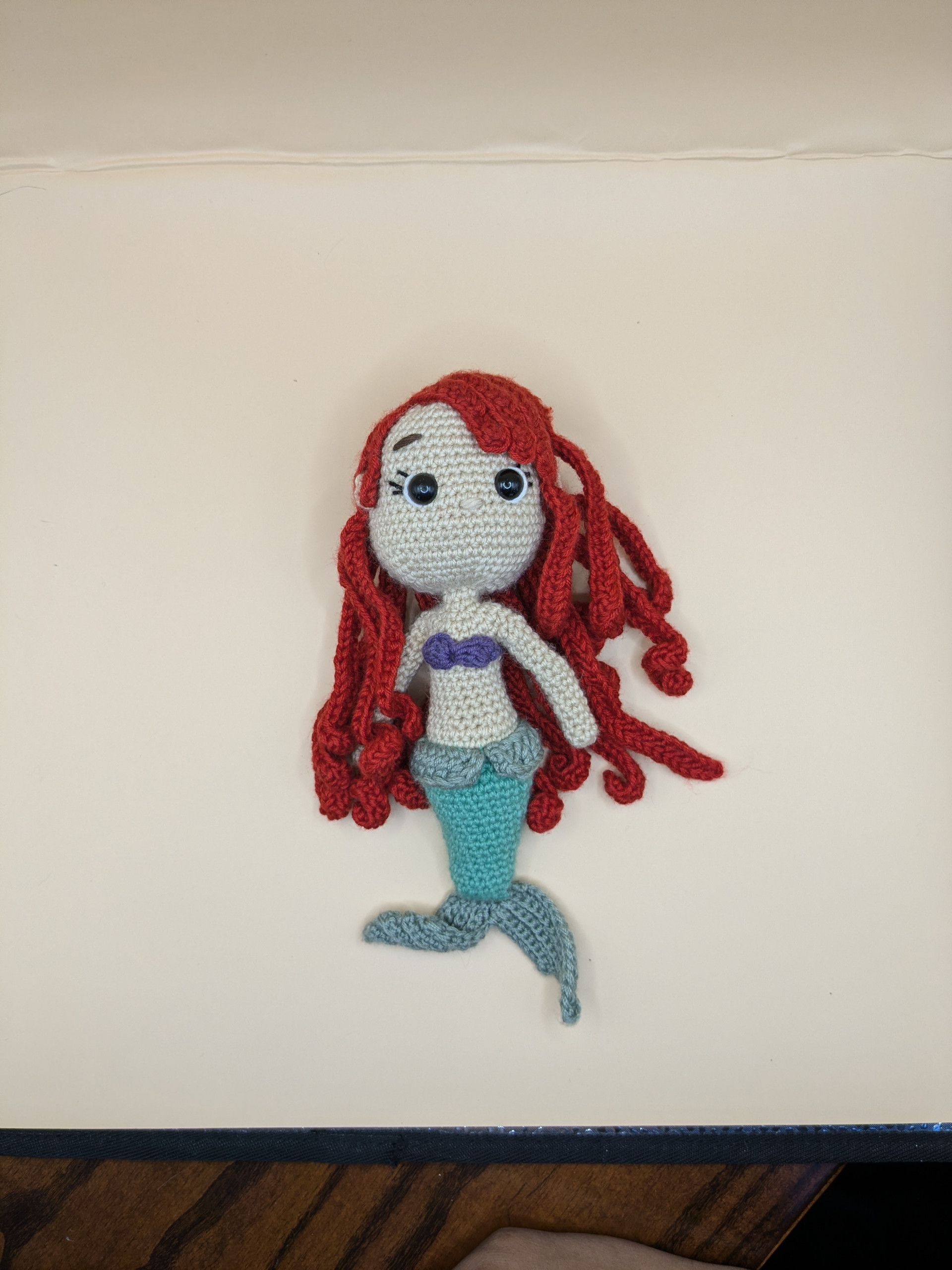 The Melodic Siren, is a stunning handmade doll inspired by the ocean's beauty and the enchanting melodies of the sea. Each doll is handmade with the utmost care and attention to detail, ensuring that no two are exactly alike. You can customize your doll with different styles and colors by sending me a message or leaving a note in your order. Crafted from soft and durable acrylic yarn, cotton thread, and stuffed with love! It is also made with safety eyes and a wooden stick for neck support. *Doll contains small parts and is not suitable for children under 3 years old* Additionally, we make and store our items in a household that has a cat.